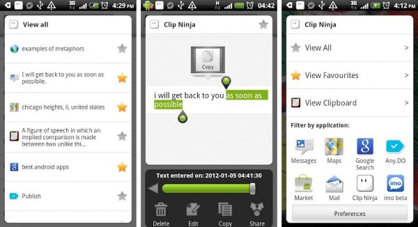 Clip Ninja is a very convenient app and ensures you never have to type anything twice, or worry about losing a piece of text if you delete it by accident. It costs $1.49 on the Android Market and you can install it on your phone by clicking on the download button below. Leave your thoughts on the app in the comments.